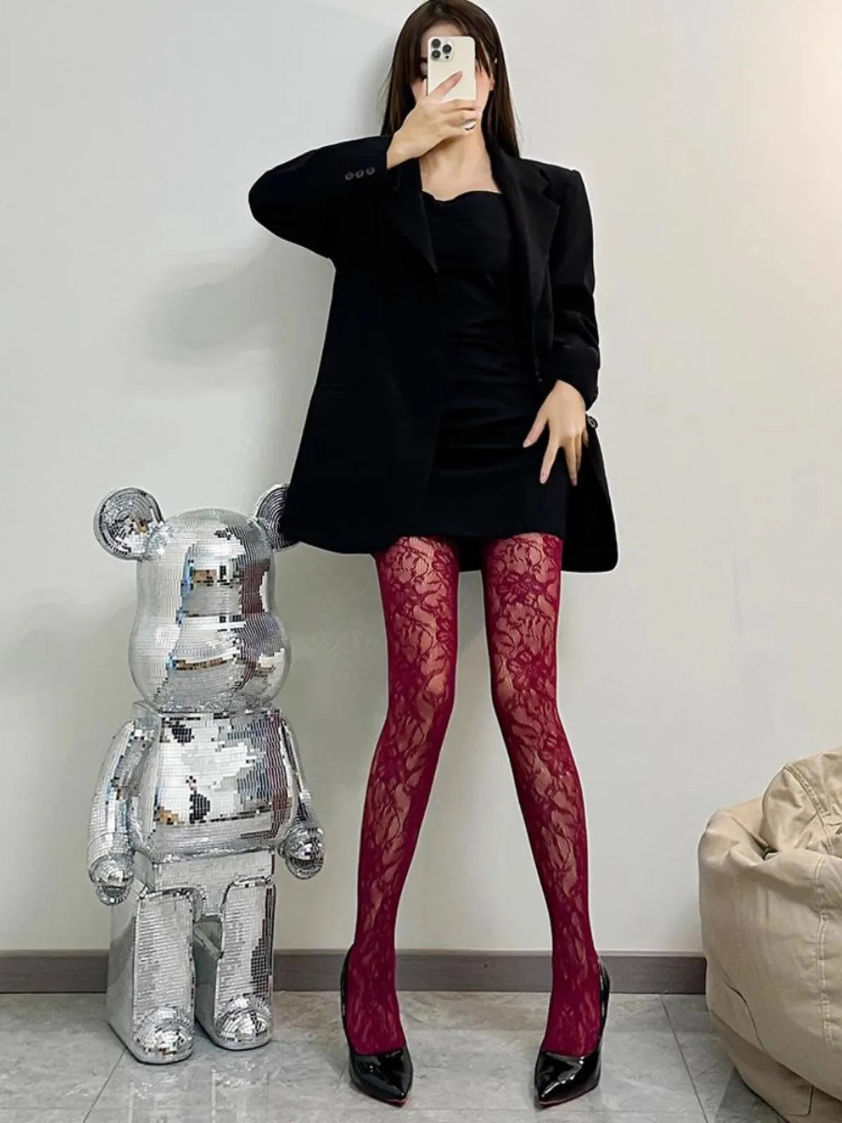 Classic Flower Lolita Kawaii Socks Lace Mesh Stocking Bottomed Pantyhose Japanese Lolita Retro Floral Rattan Red Stocking Tights
