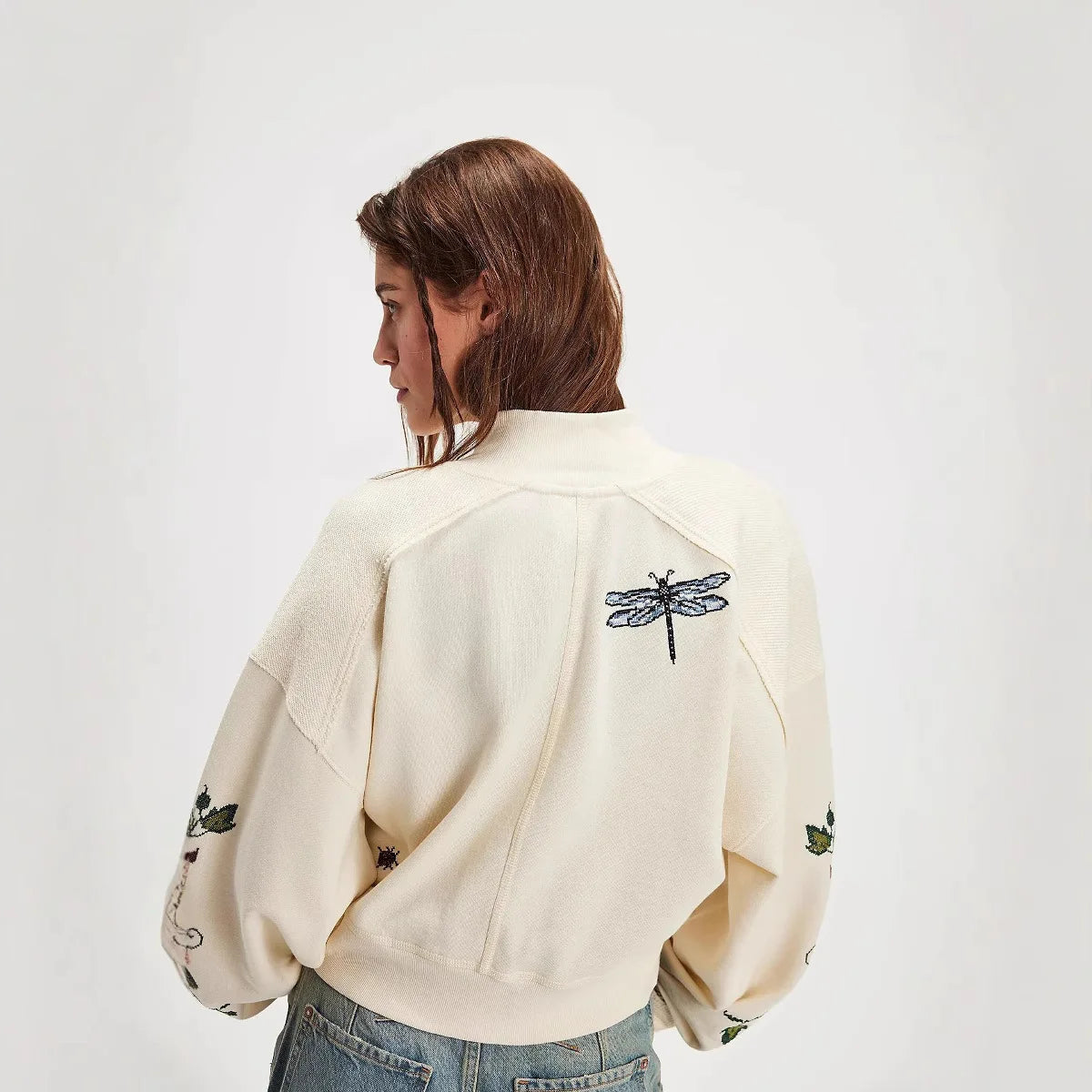Women's Embroidered Floral Single-breasted Jacket, Casual Knitted Coat for Women